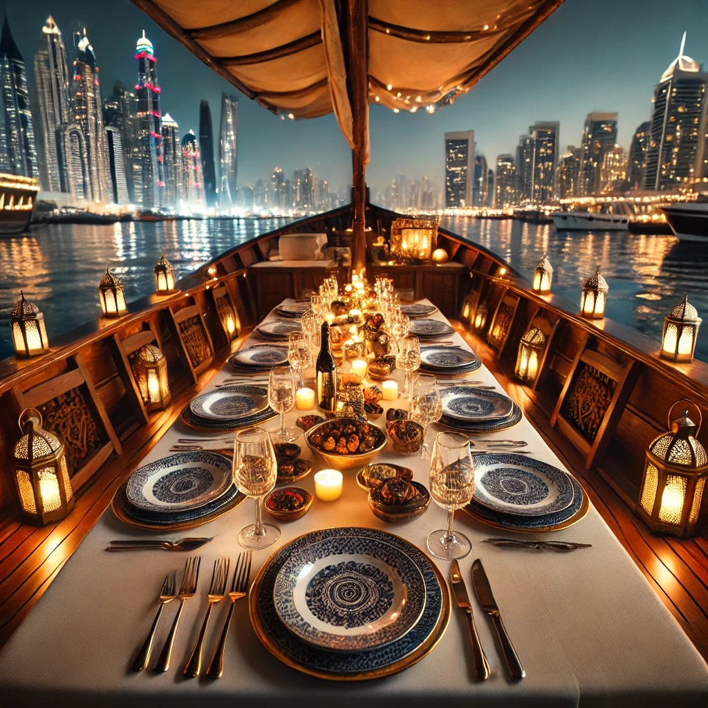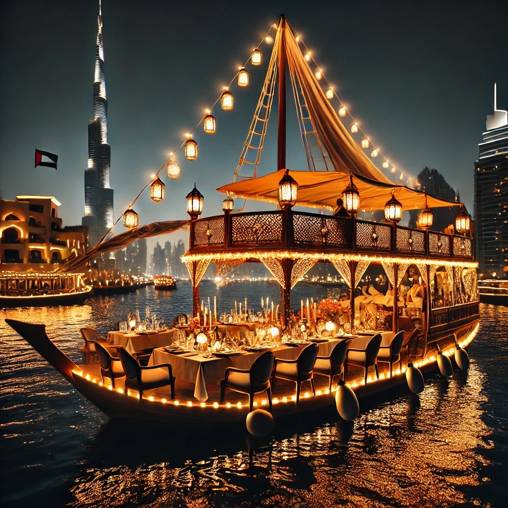 The Dhow Cruise Dinner is a truly unique and unforgettable experience that THE ALPHA WORLD L.L.C. highly recommends for visitors to the UAE. 🏙️🌟 A dhow is a traditional wooden boat 🛶 that has been used for centuries in the region for fishing and transportation. Today, these beautifully decorated dhows provide a romantic and elegant setting for a luxurious dinner cruise. 🍽️🎶
